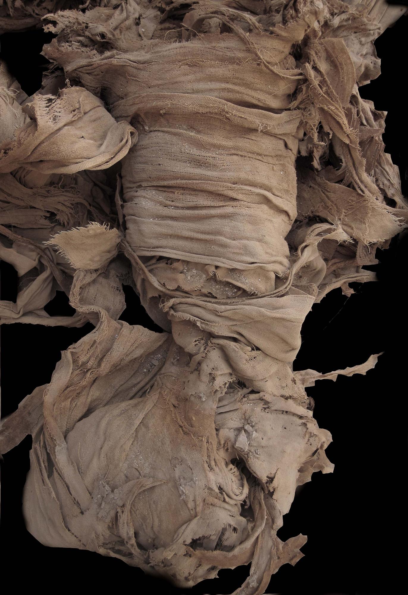 A Kamp -43- számú sír folyosójából került elő a fenti képen látható 16-19 éves nő múmiája. A pólyában talált csontváz alsó része gyolcsba tekerve került elő, a váz többi része a területről származó vegyes összetételű leletanyagból származik.