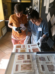 A második csoport Danijela Jemo a dubrovniki egyetem textilrestaurátora irányításával a Jelka Mis gyűjtemény lapjait dokumentálta és digitalizálta. A gyűjteményt 8-9 évvel ezelőtt poliészter tasakokba majd papírlemezből készített dobozokba helyezték. A tavalyi évben azonban vöröses-barnás foltok megjelenésére lettek figyelmesek a hímzések textil alapjain és a kartonokon. Ezért merült fel a raktározási körülmények módosításának szükségessége. A 2018 áprilisában tartott oktatói megbeszélésen született az a döntés, hogy a gyűjtemény lapjait távolítsák el a poliészter tasakokból, kerüljenek légáteresztő tasakokba és egyúttal történjen meg a gyűjtemény digitalizálása is. Ennek a csoportnak a munkáját Varga Judit papírrestaurátor hallgató a kartonok anyag- és állapotvizsgálatával és dokumentálásával segítette.