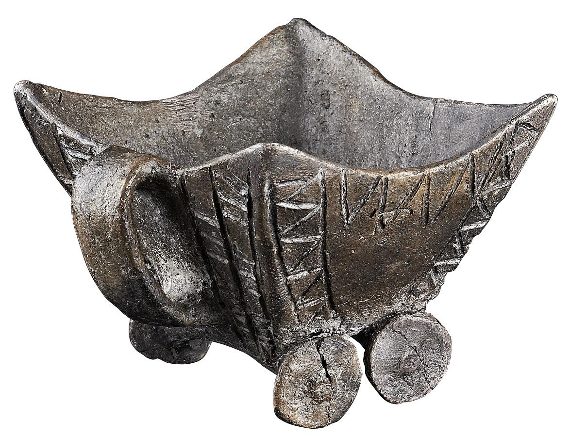 Részletesebben a Magyar Nemzeti Múzeum Őskori Gyűjteményében lévő szigetszentmártoni kocsit utánzó, agyagból formált edénnyel foglalkozunk. Ez egy négyszögletes szekrényű, tömör fakerekeken guruló, kis rakterű, könnyű mozgású – erdős terepen is használható – kocsit utánoz. Rúdja helyén szalagfül van. Oldalát bekarcolt zeg-zug minta, és több helyen vörös okker festék borítja. Korát a Kr.e. 4. évezred végére lehet keltezni.