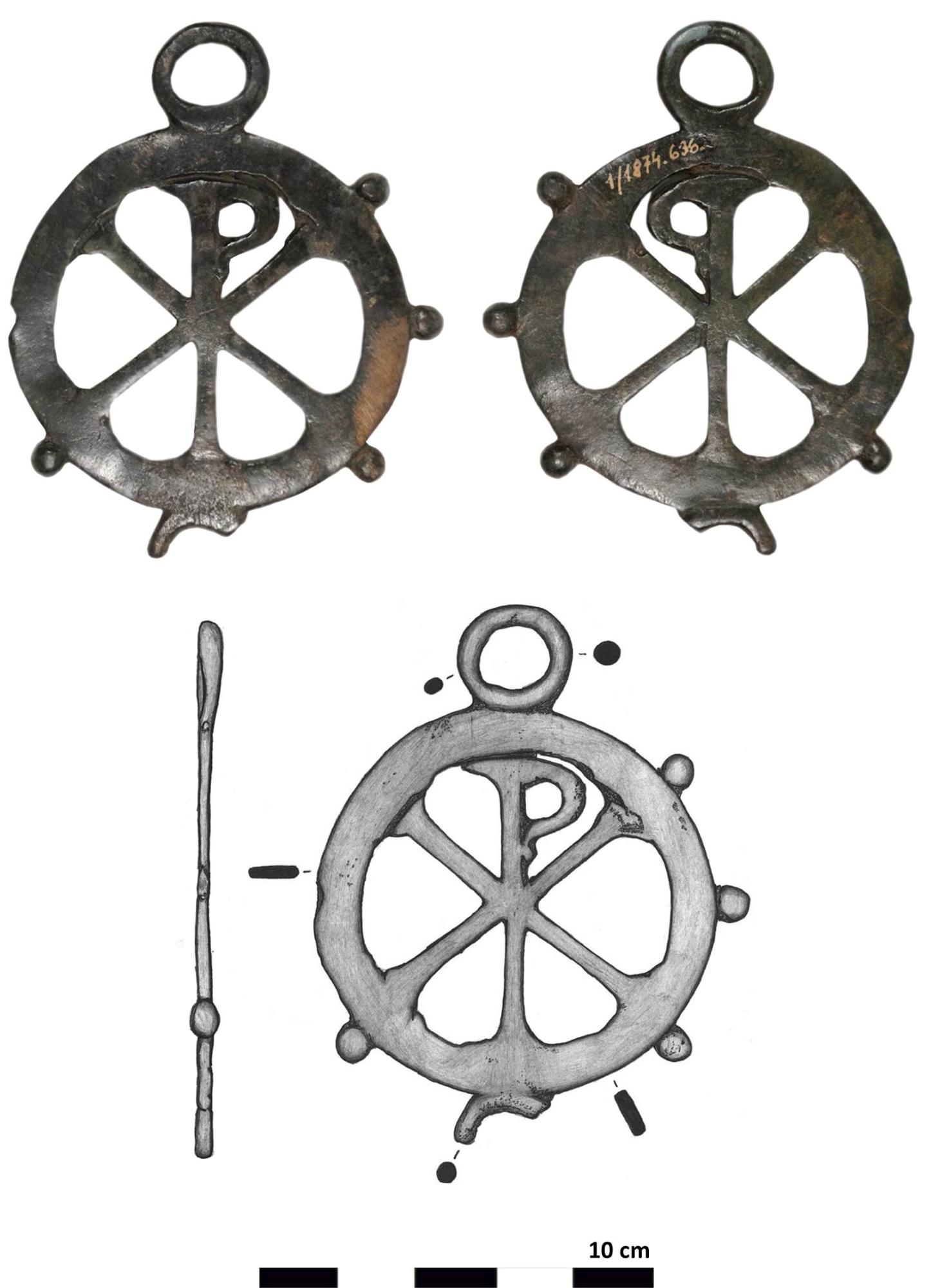 A Ráth-gyűjtemény részét képezi a római kori kereszténység két jelentős emléke – talán a hazánk dunántúli területére eső Pannonia tartományából származnak. Az egyik egy korong alakú, tengelyesen két füllel ellátott, áttört díszű öntvény, melynek mezőjében egy Krisztus-monogram (a görög „khi” = Χ és „rhó” = P) található, külső oldalát pedig lekerekített bütykök díszítik. A másik, ugyancsak öntött tárgy a mai „latin” keresztekre emlékeztet, szárai kiszélesednek, két végén egy-egy fül helyezkedik el. Felső szára „P”-t („rhót”) képez, mely a fent említett Krisztus-monogramból származtatható: a szimbólum „rhóját” megtartva, a kereszt alakzattal egyesítették a két elemet, ezáltal „keresztmonogramot” (görör: sztaurogram, latin: crux monogrammatica) hozva létre.