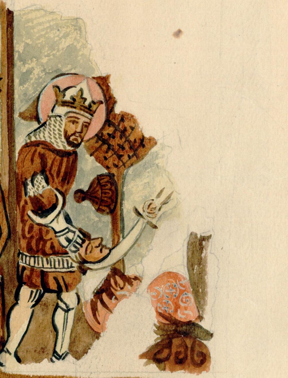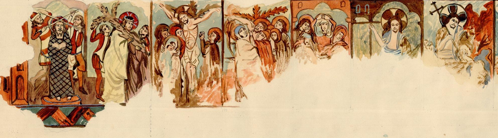 Egy székelyföldi templom freskójának rajza a Nemzeti Múzeum Adattárában