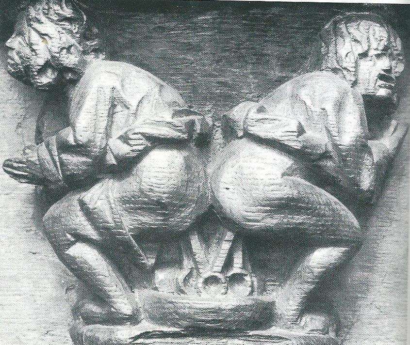 Faragott stallum részlete, Sainte-Matern templom, Walcourt, Belgium, 1531. (Eco nyomán)