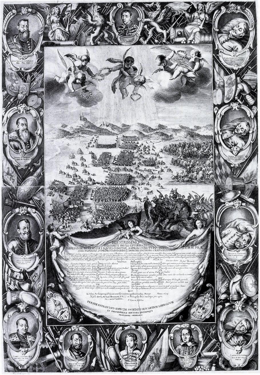 Melchior Küsel: A vezekényi csata és az Esterházyak (Benyovszky Mihály tézislapja a nagyszombati egyetemen). Rézmetszet, 1654, 85×58,5 cm – Győr, Xantus János Múzeum - FORRÁS
