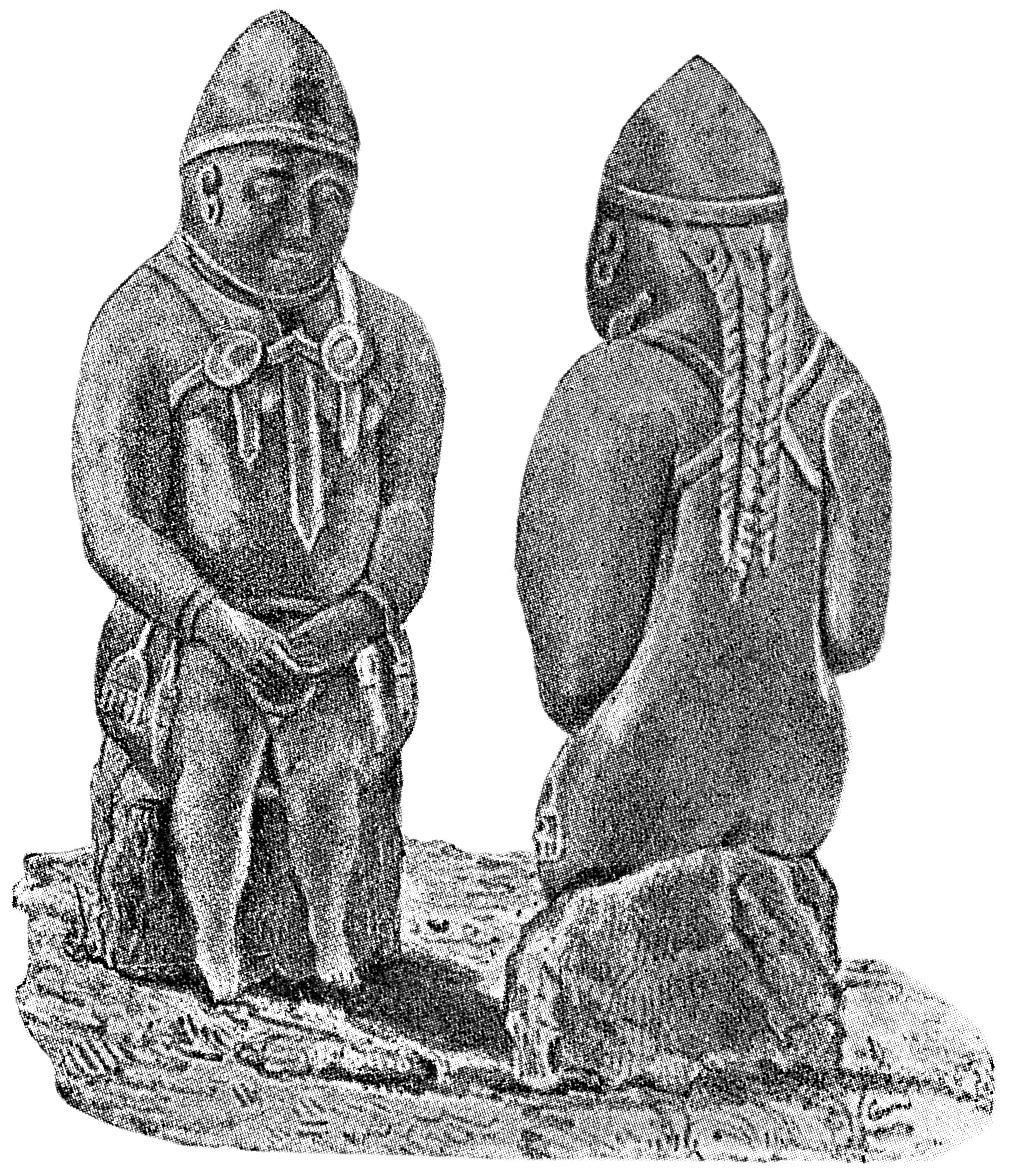 1. kép: Kamennaja baba szobor rajza. (Fehér Géza: A bolgár-török műveltség emlékei és magyar őstörténeti vonatkozásaik. Les monuments de la culture protobulgare et leurs relations hongroises. Archaeologia Hungarica VII. Budapest 1931. nyomán)