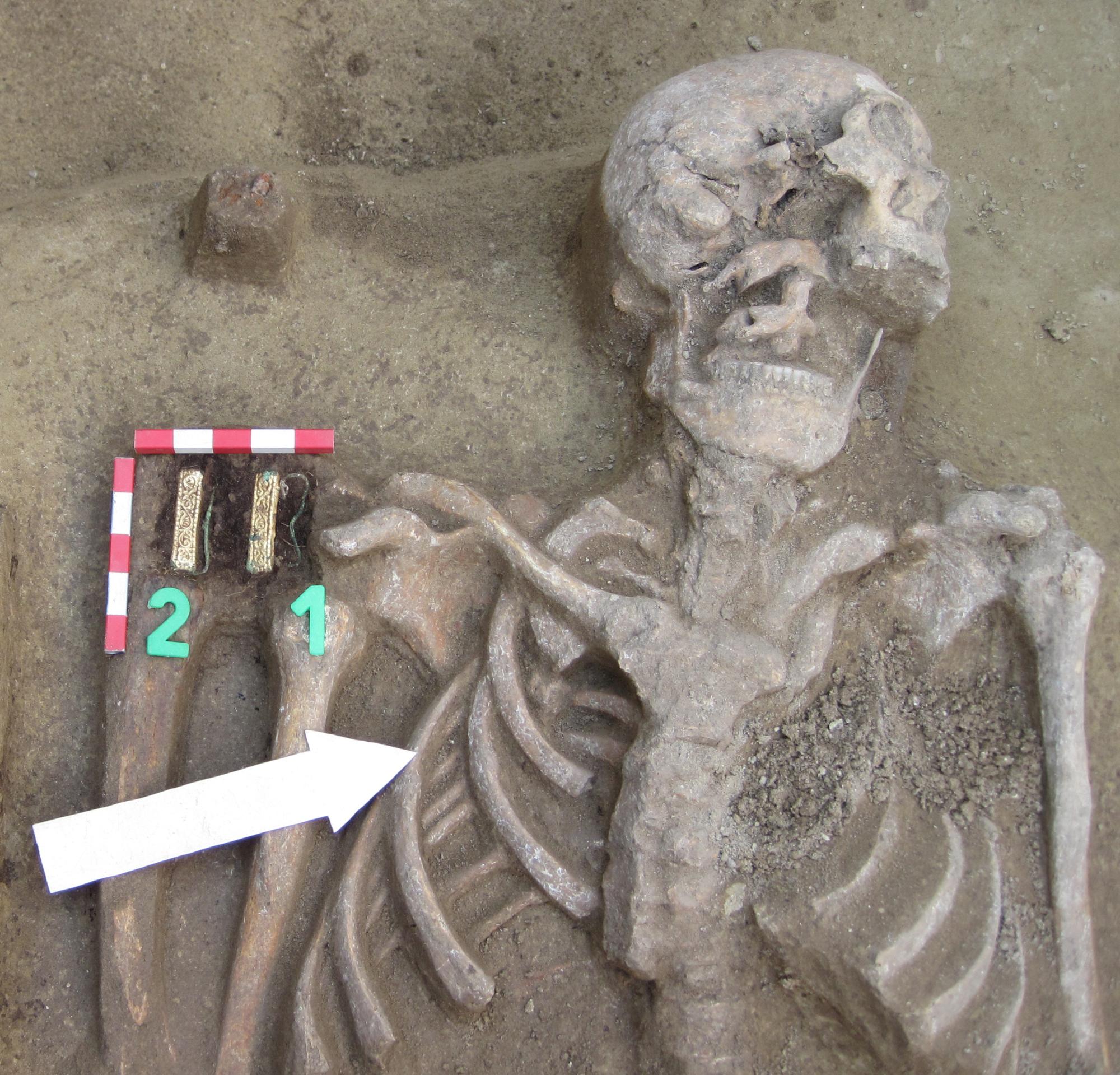 2. kép: Jászfényszaru – Csépe-lapos II. 27. sír: varkocsszorító pár a sír bontása közben (Fotó: Schilling László)