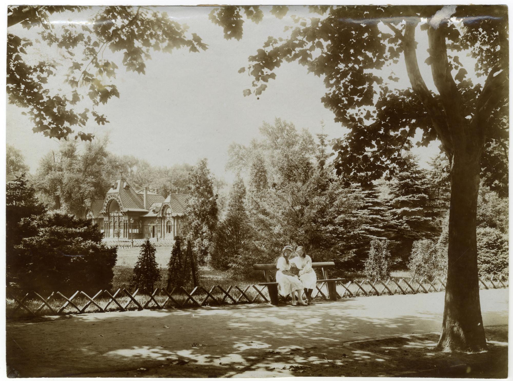 1. kép: A város tüdeje: sétány a Városligetben, háttérben a Vajdahunyad vára mögötti, mesterséges, ún. polgári jégpálya melegedője. Müllner János felvétele, 1917 körül, zselatinos ezüst papír pozitív, 17 × 23 cm, Magyar Nemzeti Múzeum Történeti Fényképtár, ltsz.: 899/1948