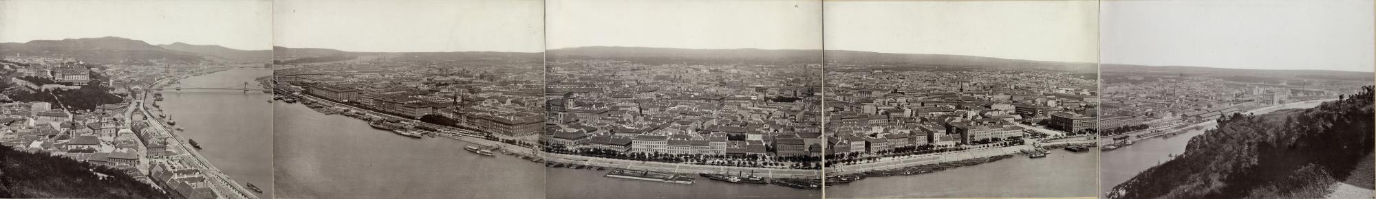 6. kép: Pest panorámája a Gellérthegyről. Kozmata Ferenc panorámafelvétele, 1882 körül, celloidin, 35,5 × 26 cm × 5 cm, Magyar Nemzeti Múzeum Történeti Fényképtár, ltsz.: 2342/1962 a-e ​