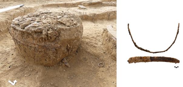 Urna alakú edény köré hajlított vaskard Novajidrány–Sárvár-erdészház lelőhelyről. MNM RÖG (Fotó: Bicskei József)