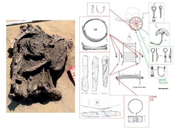 Kocsialkatrészeket tartalmazó temetkezések Sajópetri–Homoki-Szőlőskert lelőhelyről. (Tankó 2020 167, 4. kép, 168. 5. kép)