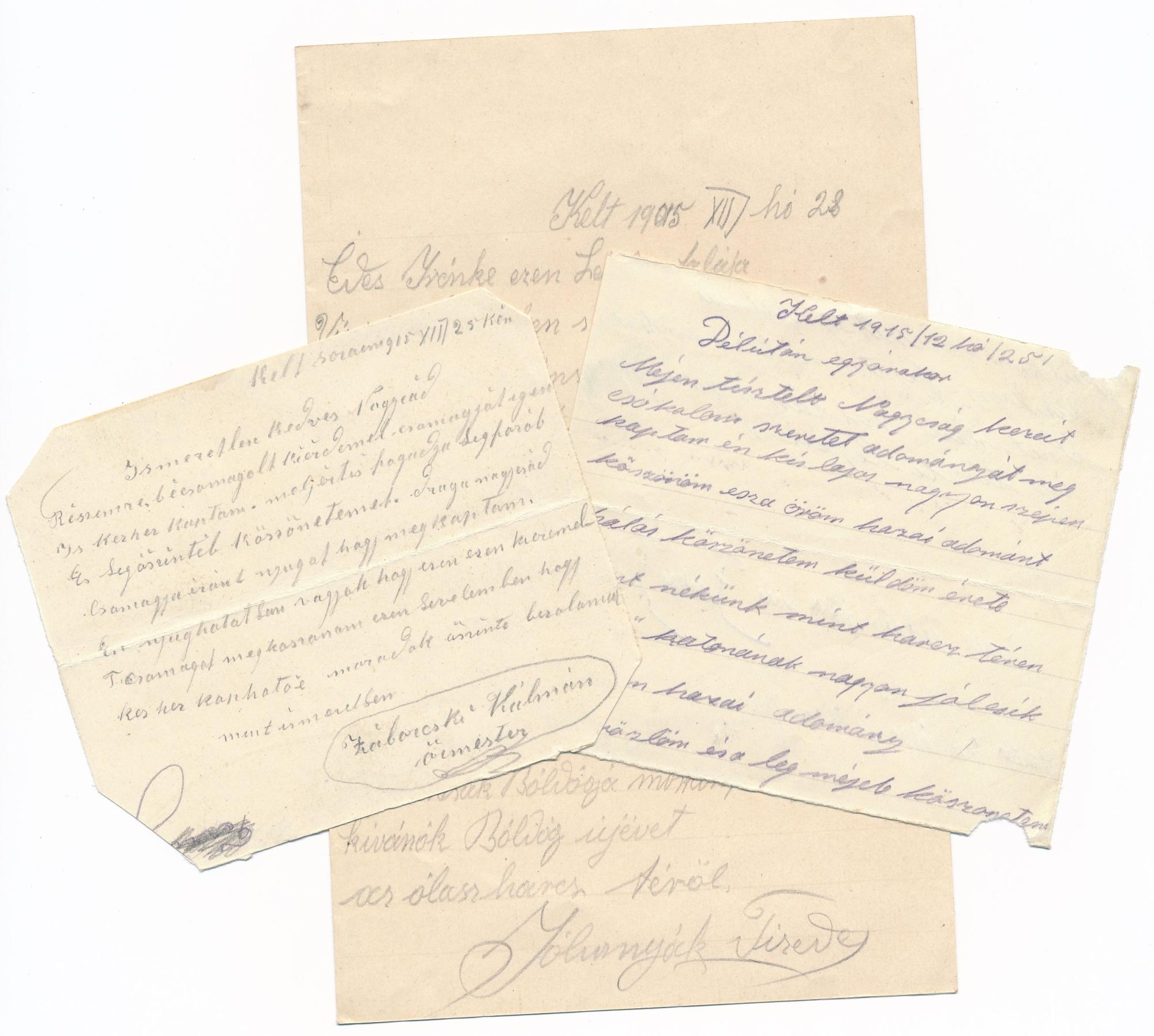 Az ide érkező karácsonyi csomagok hatására, a katonák ismeretlenül is igyekeztek írásban megköszönni Lakatos Irénnek és segítőtársainak a gondoskodást. A maguk egyszerű módján hosszabb-rövidebb válaszokat küldtek haza, Debrecenbe, mint például ilyet: „Mélyen tisztelt Nagyság, kezeit csókolom, szeretet adományát megkaptam (…). Üdvözlöm és a legmélyebb köszönetem küldöm én Mihályfalvai Kis Lajos fiatal nőtlen ember. Szatmári Zoltán hadnagy úr tiszti legénye. Kelt 1915. 12 hó 25.” Nem lehet nem kihallani a sorokból, hogy a háború zárt férfivilágából elvágyakozva, milyen örömet tudott okozni egy női kézzel írt pár soros levél.