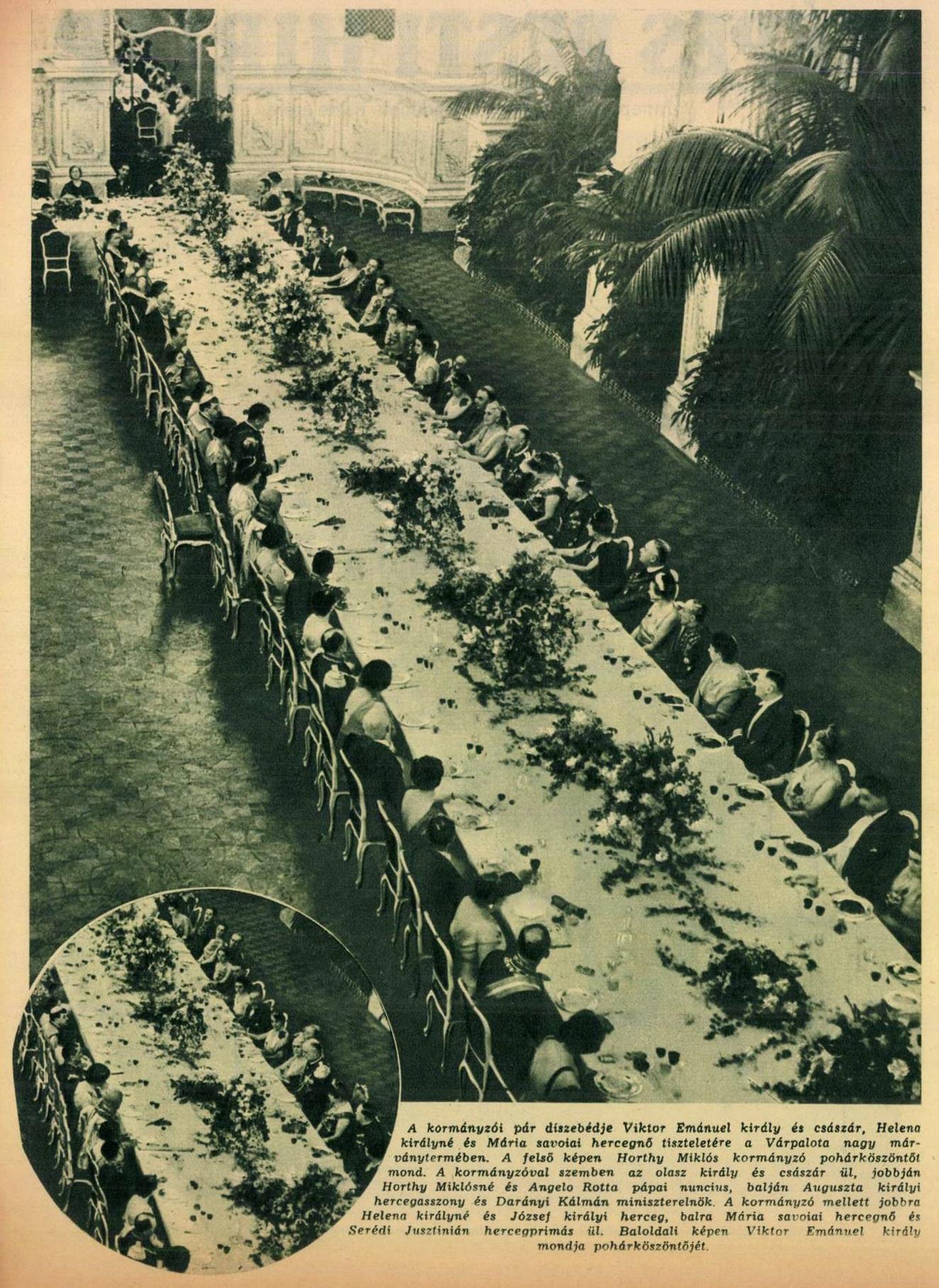 Horthy Miklós kormányzó és felesége, Purgly Magdolna május 19-én este 8 órakor a királyi palota nagy márványtermében díszebédet adott III. Viktor Emánuel olasz király és felesége, Heléna királyné tiszteletére.