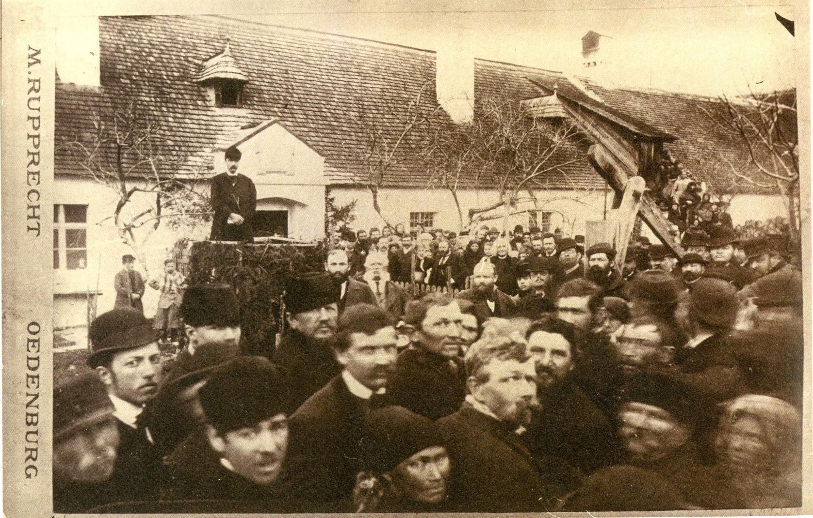 Rupprecht Mihály fényképén Zichy Gézán kívül még Hannibal József Sopron-megyei főjegyző is jól látható, aki a pulpituson áll. Az egykori tartalékos hadnagy a grófhoz hasonlóan, szintén a pozsonyi akadémián folytatott jogi tanulmányokat. 1887-től szabadelvű politikusként működött.