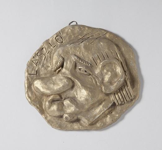 8. kép. Vértes László gipszből készített karikatúra-domborműve László Gyuláról, 1950-es évek  (MNM Központi Adattár és Digitális Képarchívum, Fotó: Törő Vivien). Ebből még további hét személyé található a Vértes-hagyatékban.