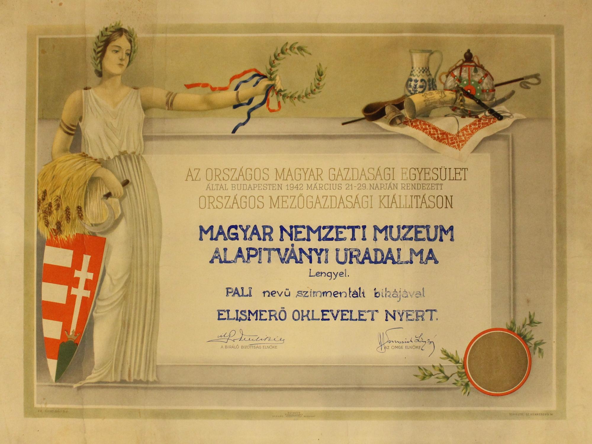 1940 volt az első év, amikor az Alapítvány támogatni tudta öt-ötezer pengővel a múzeumot és a Széchényi Könyvtárat, majd az év végén 38.917 pengőt kapott a két intézmény. Az állattenyésztésben elért magas színvonalat mutatja az oklevél, amelyet az uradalom Pali nevű bikájáért az Országos Mezőgazdasági Kiállításon 1942-ben kapott.