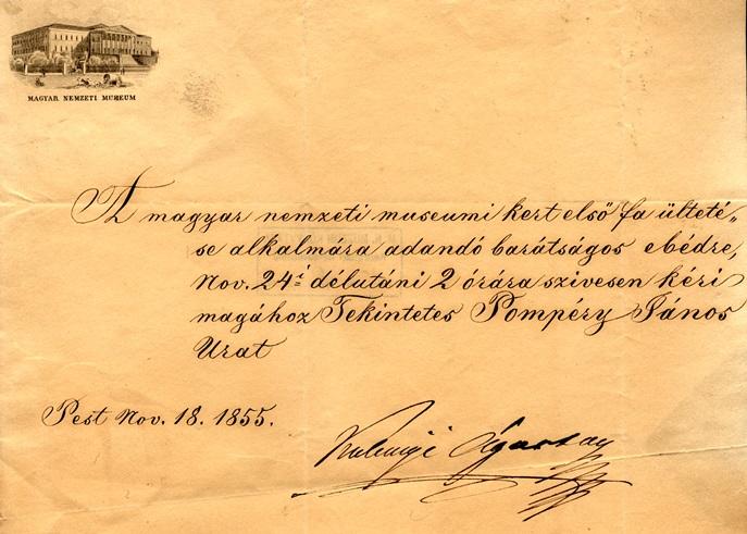 Meghívó a kertavató ünnepségre, 1855 (Országos Széchényi Könyvtár, Kézirattár)