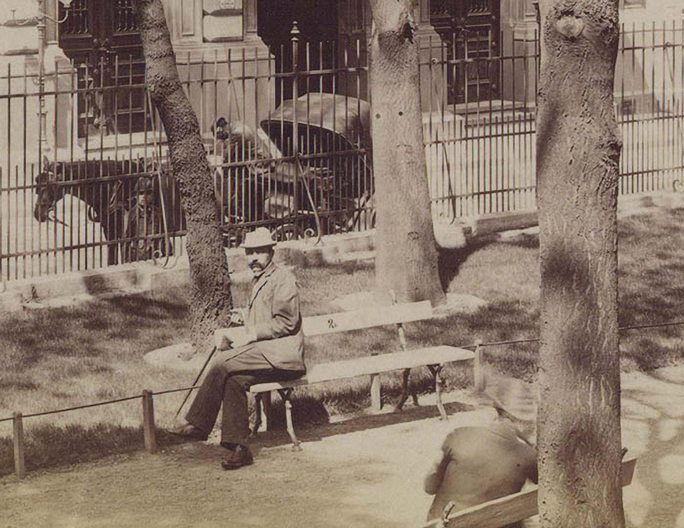 Itt közelebbről látszik az ágacska-pad és rajta a pad sorszáma, 1888 (részlet, BFL/Fortepan – Klösz György felvétele)