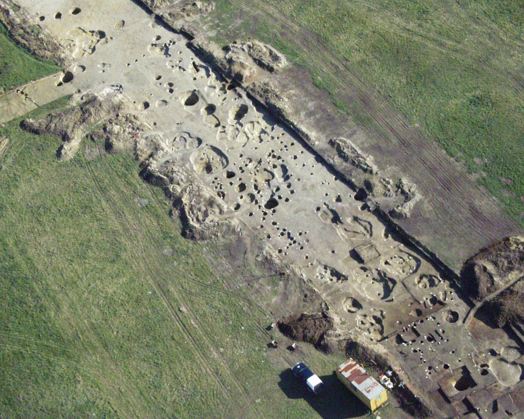 1. kép: Balatonkeresztúr Réti-dűlő lelőhely feltárás közben madártávlatból (Fotó: Rákóczi Gábor)