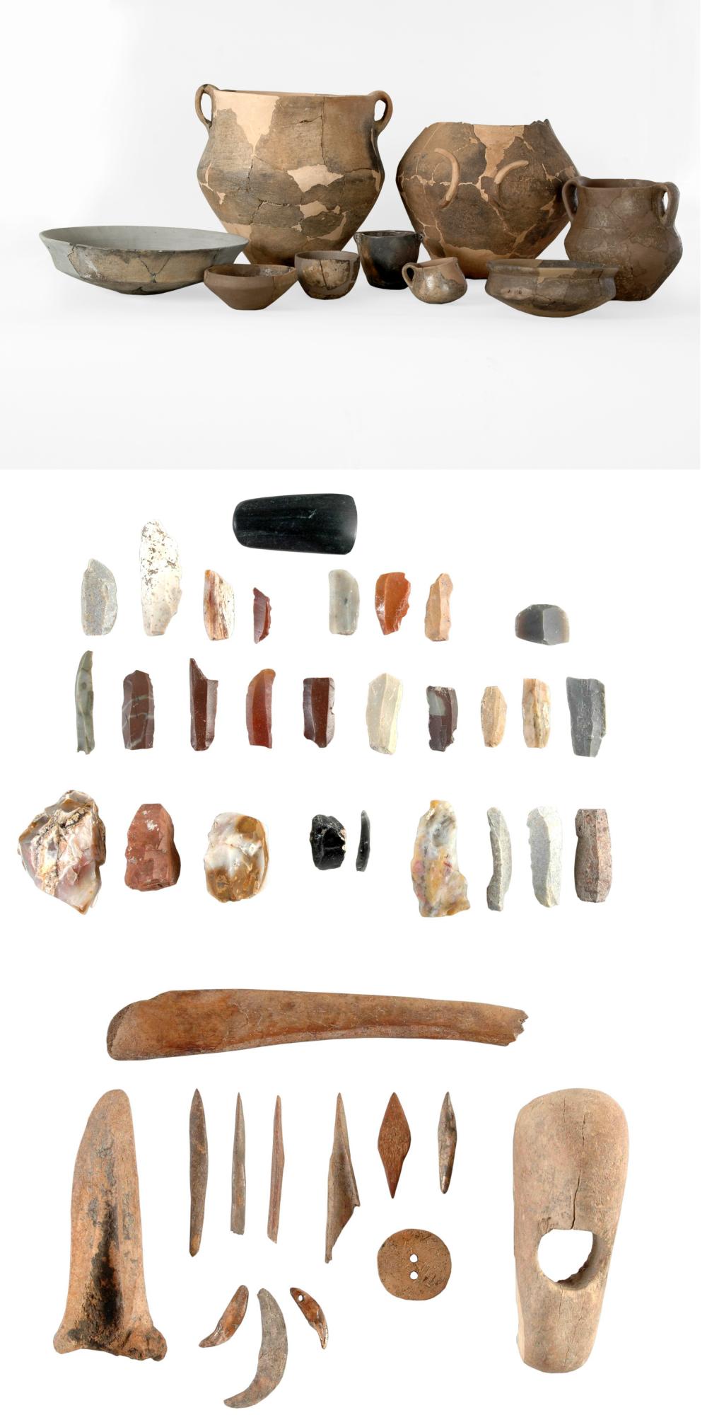 2. kép: Kerámia edények, kő- és csonteszközök Abony 36 késő rézkori település gödreiből (Fotó: Fazekas Fanni).