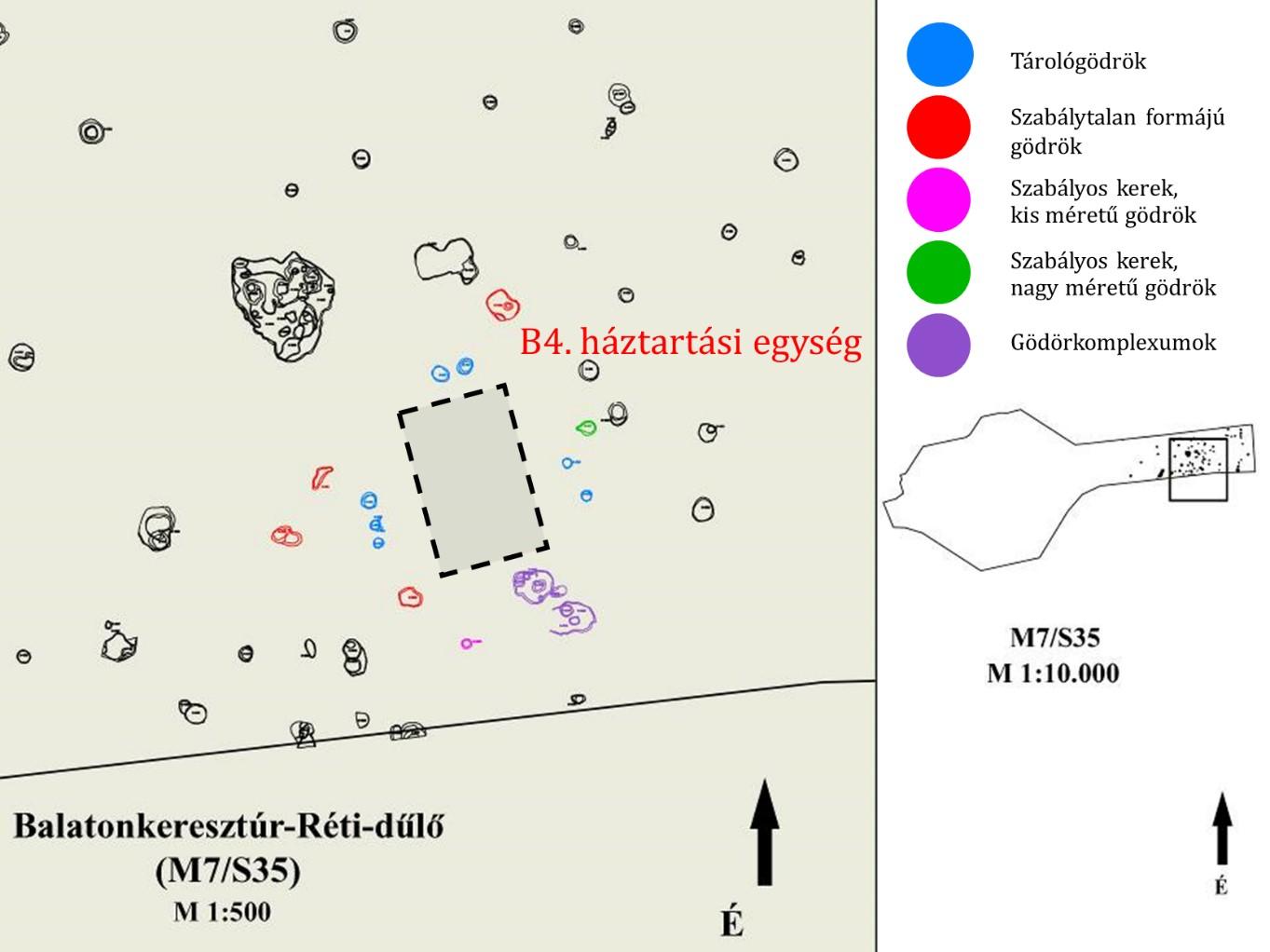 A Magyar Nemzeti Múzeum kutatóhelyén 2018 decemberétől indult „Az anyagi kultúra változó horizontjai” című OTKA kutatási programunkban a késő rézkori háztartások feltérképezésére vállalkoztunk. Kísérletet teszünk annak meghatározására, hogy a késő rézkori badeni településeken milyen típusú, funkciójú objektumok tartozhattak a ház körüli egységhez, mi lehetett kiterjedésük térbeli és időbeli határa, valamint a háztartások területén belül milyen tevékenységi körök emlékei őrződtek meg. Elég mennyiségű adat megfelelő elemzésével, a jó kérdések feltevésével a települések gödreiben, objektumaiban fellelt tárgyak, szerves maradványok statisztikai eloszlásából, összefüggéseik vizsgálatából, mintázatuk feltérképezésével közelebb juthatunk a badeni településeken belüli telepobjektumok funkciójának meghatározásához, egymáshoz való és az őket használó emberek viszonyához. Az objektumok telepen belüli elhelyezkedésének vizsgálata, esetleges speciális jellemzőik felismerése lehetővé teszi háztartási egységek körvonalazását, illetve ha voltak ilyenek, akkor a településen belül folytatott különböző gazdasági és szakrális tevékenységek helyszíneit. Arra számítunk, hogy az egyidejűleg használt objektumok azonosítása, és a bennük feltárt régészeti leletek minőségi és statisztikai elemzése, természettudományos vizsgálata és ezáltal a tevékenységi területek meghatározásával az objektum-csoportok szerkezetében kirajzolódik egy olyan üres terület, amelyet a háztartási egységhez tartozó lakóház foglalhatott el. Az előzetes eredményeink alapján Balatonkeresztúr lelőhelyen például az egy időhorizontba tartozó különböző típusú objektumok és a bennük lévő leletanyag részletes, fentebb leírt vizsgálatai alapján 4-5 olyan objektumcsoport volt körvonalazható, amelyben 2-6 tárológödör, 2-3 szabálytalanabb formájú, talán korábbi, már erodálódott tárológödör és a közelben agyagkinyerésre használatos 2-3 szabálytalan formájú beásás vagy gödörkomplexum, melyeket a nyomok alapján munkaterületekként használhattak – fogott körbe egy üres területet, amely így közvetett bizonyítékként házhelynek feltételezhető. Nem találtunk tűzhelyet vagy kemencét minden ilyen egységnél, legtöbb esetben a nagy, szabálytalan alakú gödrökben kialakított tűzhely volt megfigyelhető. A kerámia- és állatcsont-töredékek nagyobb felhalmozódása a gödörcsoport déli, délnyugati felén volt észlelhető, amely etnoarchaeológiai példák alapján a bejárat felőli oldalra utalhat.
