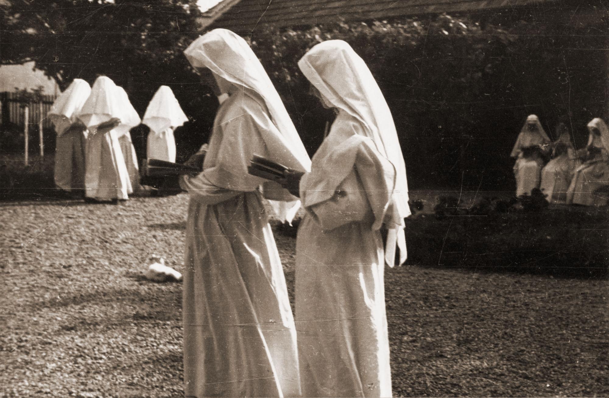 5. kép: Premontrei nővérek a külsővati zárda kertjében, 1930-as évek. Premontrei Női Kanonokrend rendháza, Zsámbék. Fotó: Premontrei Női Kanonokrend