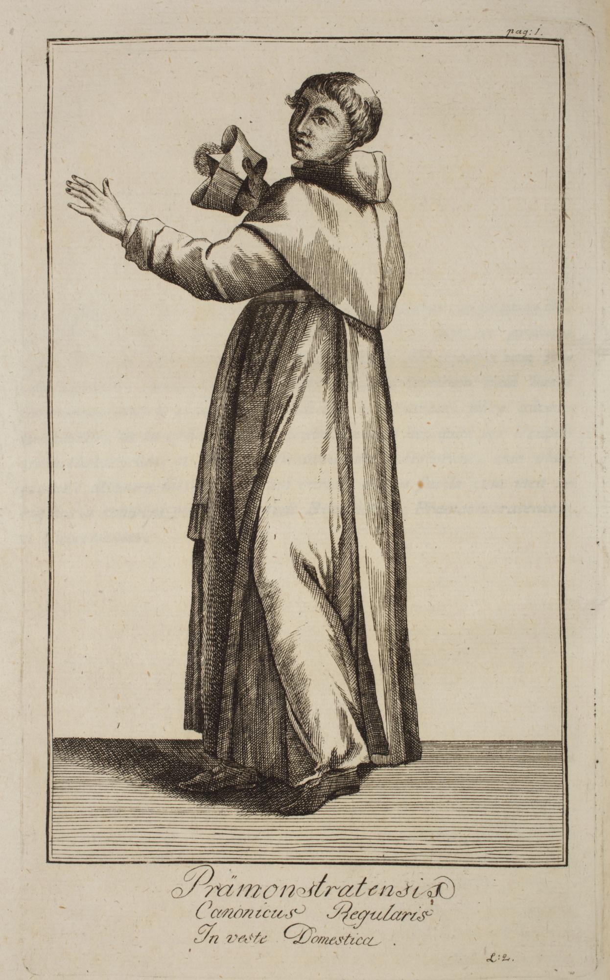 3. kép: Magyar premontrei szerzetes házi öltözetben. Rézmetszet Damian Fuxhoffer: Monasteriologia Regni Hungariae (Veszprém, 1803) című könyvében. Csornai Premontrei Prépostság, Csorna. Fotó: Dabasi András, 2021