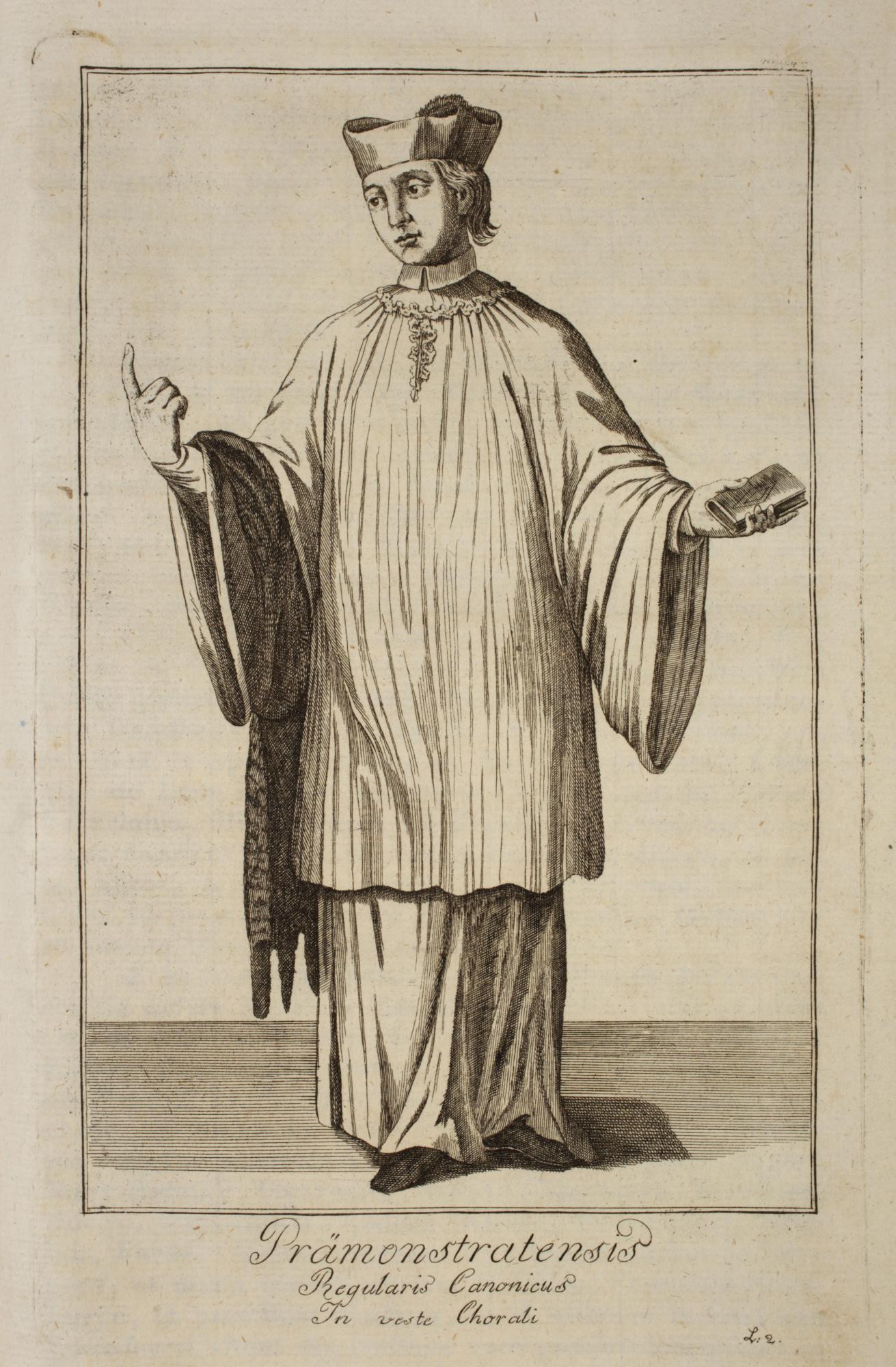 4. kép: Magyar premontrei szerzetes kórusöltözetben. Rézmetszet Damian Fuxhoffer: Monasteriologia Regni Hungariae (Veszprém, 1803) című könyvében. Csornai Premontrei Prépostság, Csorna. Fotó: Dabasi András, 2021