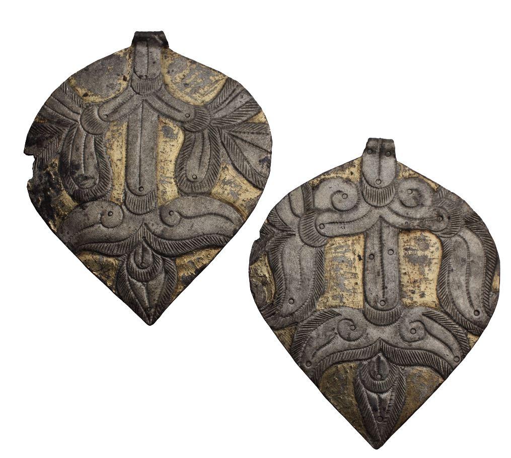 Utóbbiak aranyozott hátterük, poncolt, palmettamintás díszítésük és kialakításuk alapján eredetileg jó eséllyel – az előkelő női sírokból ismert – lemezes hajfonatkorongok lehettek. A rajtuk megjelenő növényi motívum ráadásul igen szoros párhuzamot mutat egy konkrét lelet, az Anarcs-Czóbel birtokról (mai nevén Ajak-Czóbel birtok) származó hajfonatkorong életfa-ábrázolásával.