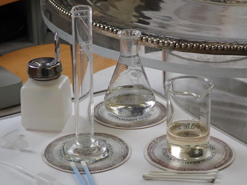 Újrahasznosított hulladékból készített alátétek a Seuso-tál restaurálása közben