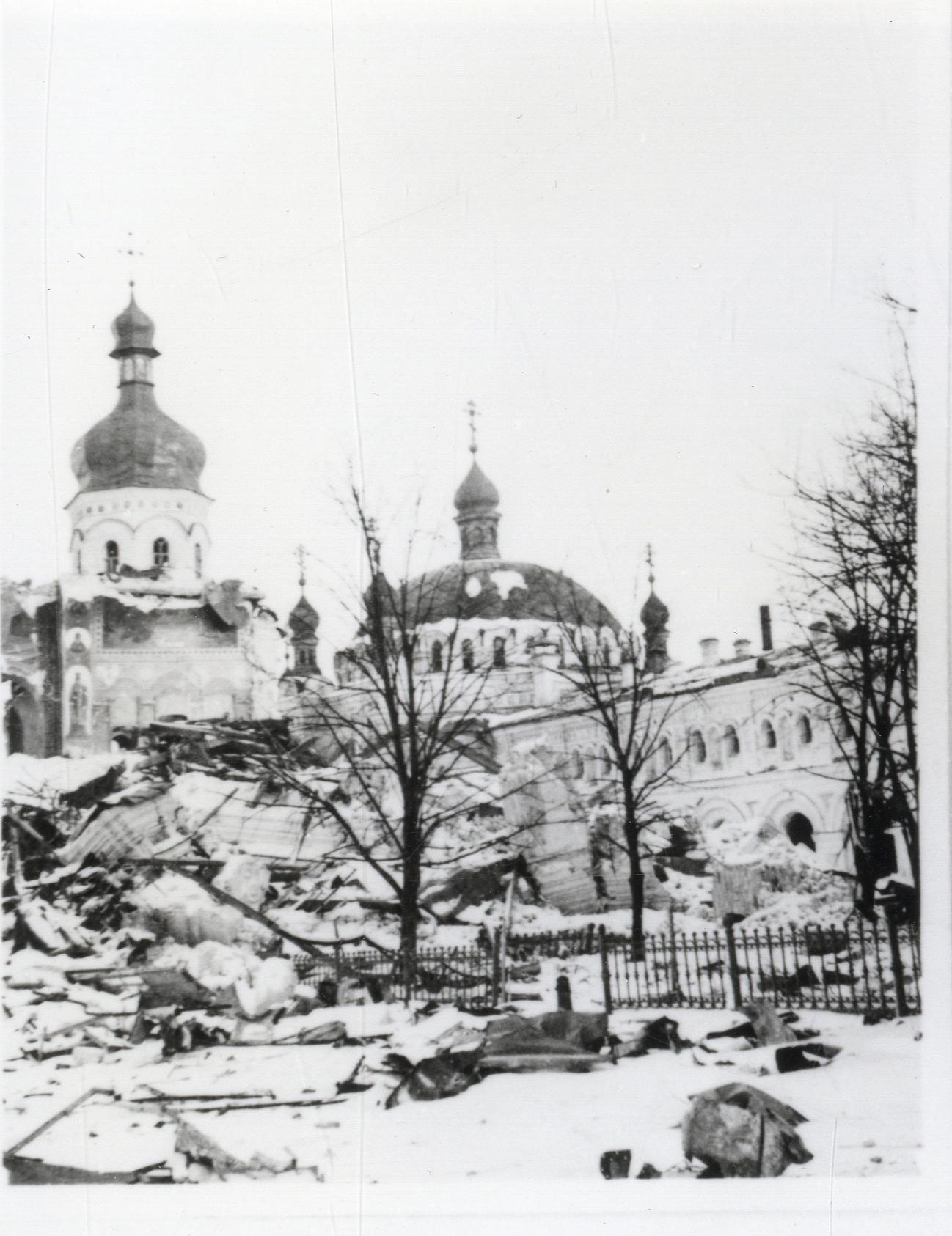 Fettich is megrendülten számol be a látottakról: „autóval mentünk a Lavra-múzeumba. A német katonai őrség igazoltatott bennünket s beléptünk a Lavra-portálán a szent helyre, Oroszország vallási életének központjába. De micsoda szörnyű kép tárult elénk! A hatalmas Uspenszkij-katedrális, mely a XI. században épült bizánci mintára emeletnyi magasságú romhalmazzá vált. Csupán a délkeleti egyik kis kupolás rész áll, a hozzácsatlakozó részek falfestményeivel (későbbi értéktelen ráfestések!), melyek tető nélkül, csupaszon és csonkán merednek az égnek.” Ezen felül azzal is szembesültek, hogy a Történeti Múzeum egy részét feldúlták és kifosztották, ugyanakkor voltak viszonylag épen maradt egységek. „A múzeum két raktárhelységében is találtunk értékes bronz- sőt ezüstrégiségeket. Az egyik kiállítási teremben két nagy vitrinben nagy mennyiségű népvándorlás kori bronz és ezüst fibula fekszik teljes érintetlenségben.” Fettich számára ez különösen fájdalmas volt, mert ő 1935-ben már tanulmányozhatta az anyagot. Keserűen állapította meg a konkrét veszteségeket. „Egy másik, fejedelmi magyar sírt századunk első éveiben a Bolskaja Wladimirszkaja (= UI. Korolenka) közelében lévő Zolotaja Vorotánál (Arany kapu) ástak ki. Ez a gyönyörű lelet 1935-ben kezemben volt az Istor. Muzej-ben. Most csak néhány jelentéktelen darabját találtuk meg ennek a számunkra nagybecsű leletnek.”