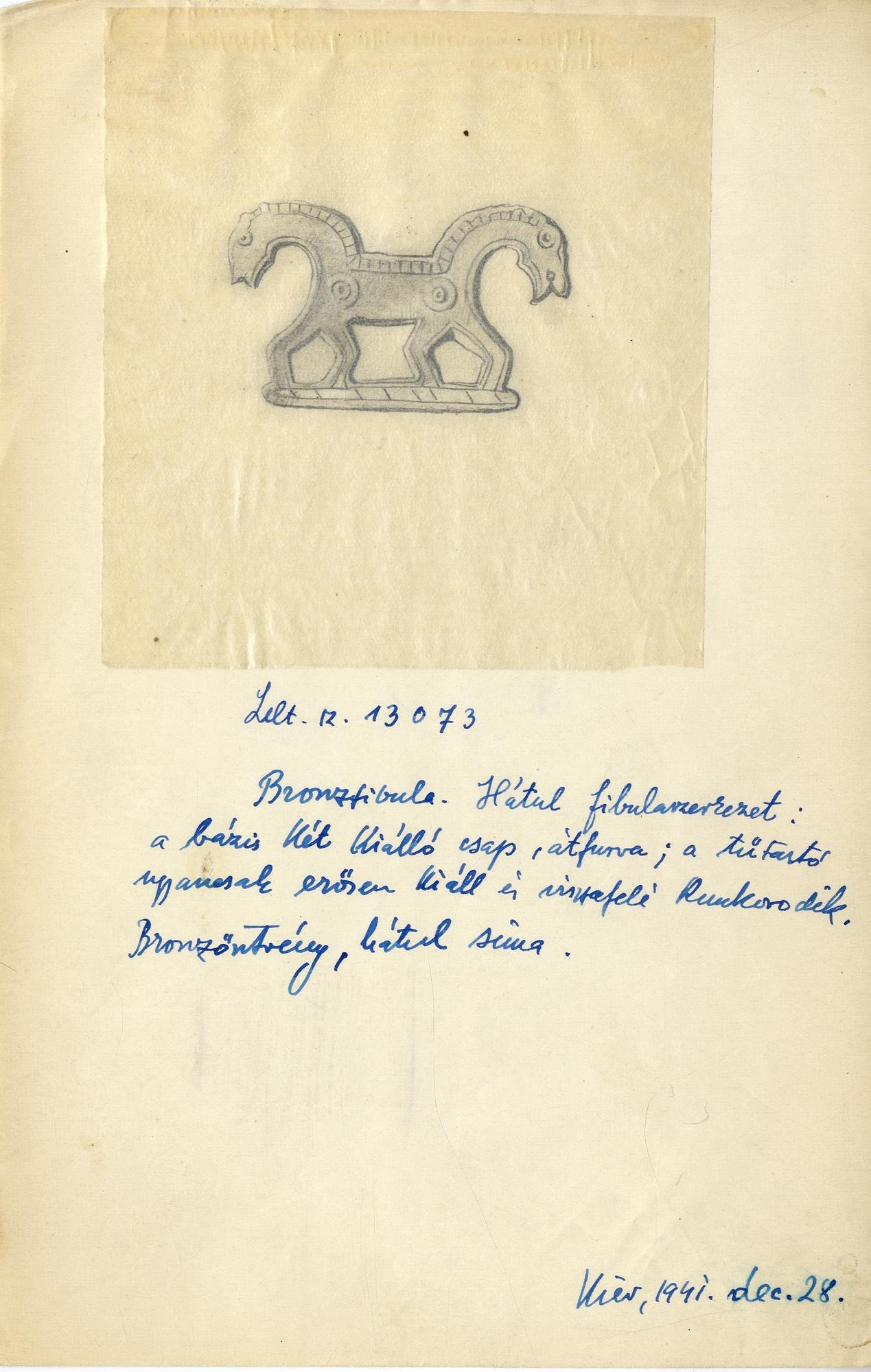 Fettich Nándor „adatlapja” az egyik bronzfibuláról