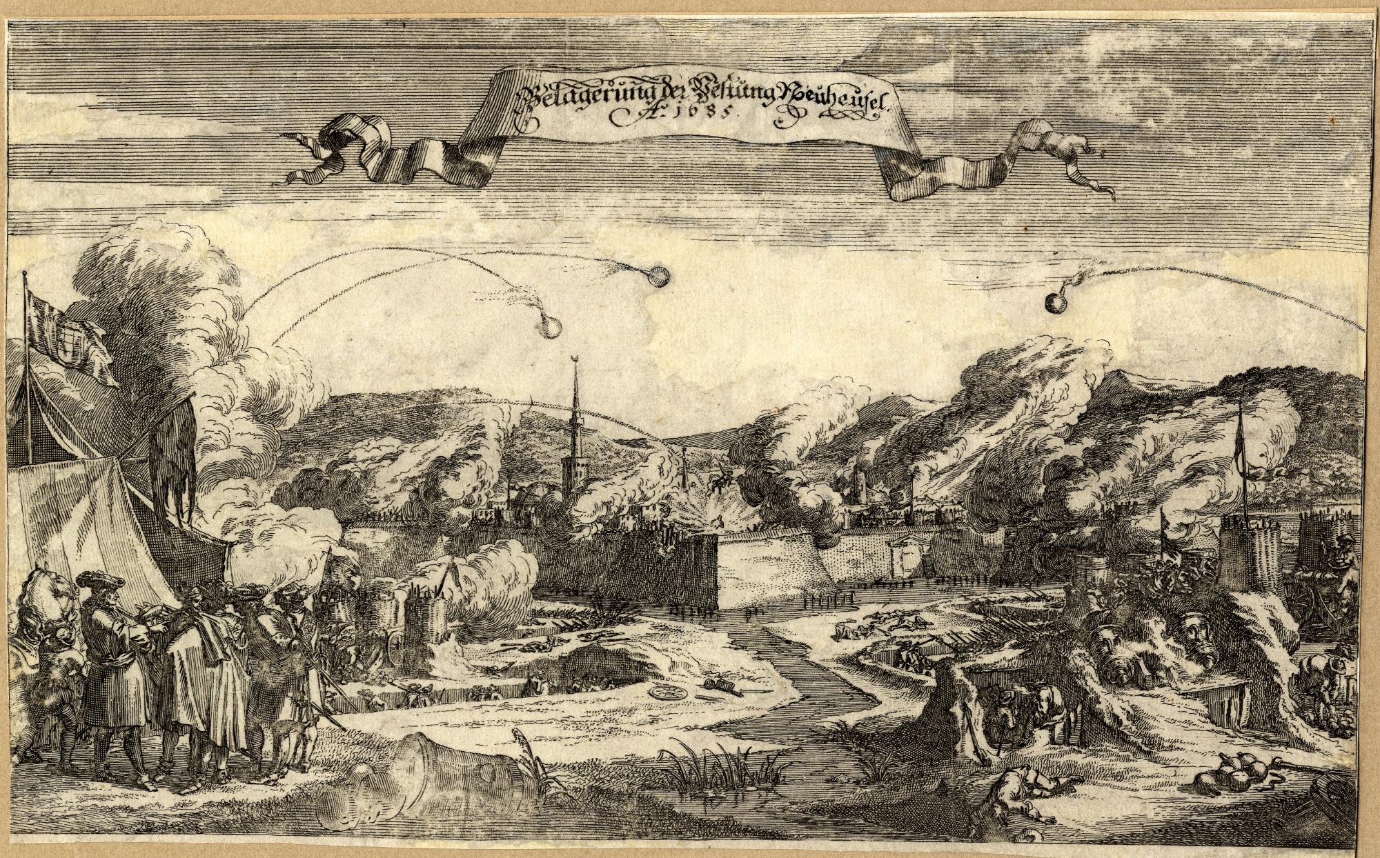 Ismeretlen német mester: Érsekújvár ostroma, 1685. Vetágyúkkal lövik az erősséget.
