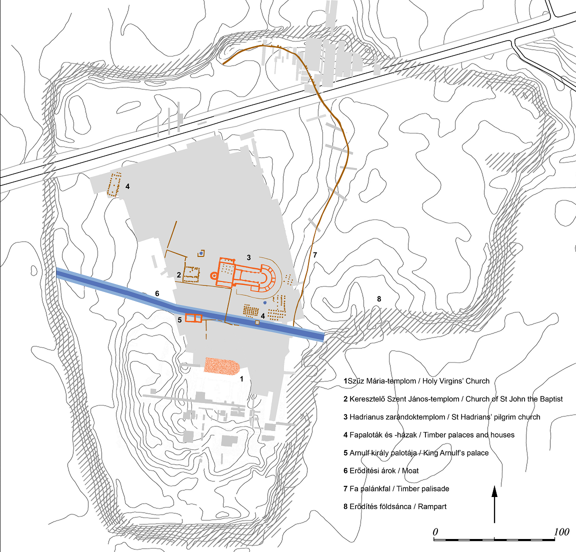 A jelentősebb 9. századi épületek a Vársziget feltárt területén (MNM Viemann Zsolt - Ritoók Ágnes)