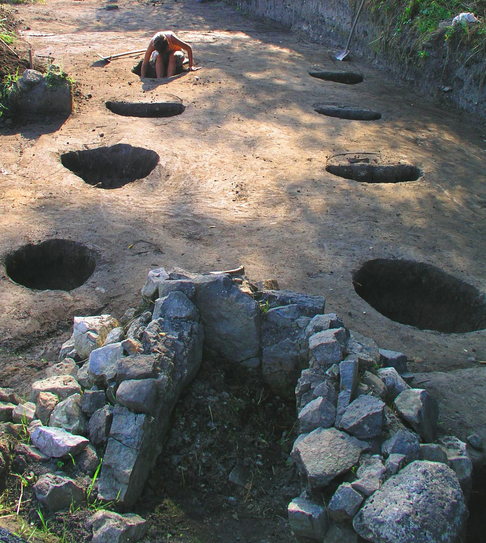 A templomtól délre, a salzburgi érsek és kísérete számára épült fapaloták oszlopgödreinek feltárása (Fotó: Szőke Béla Miklós)