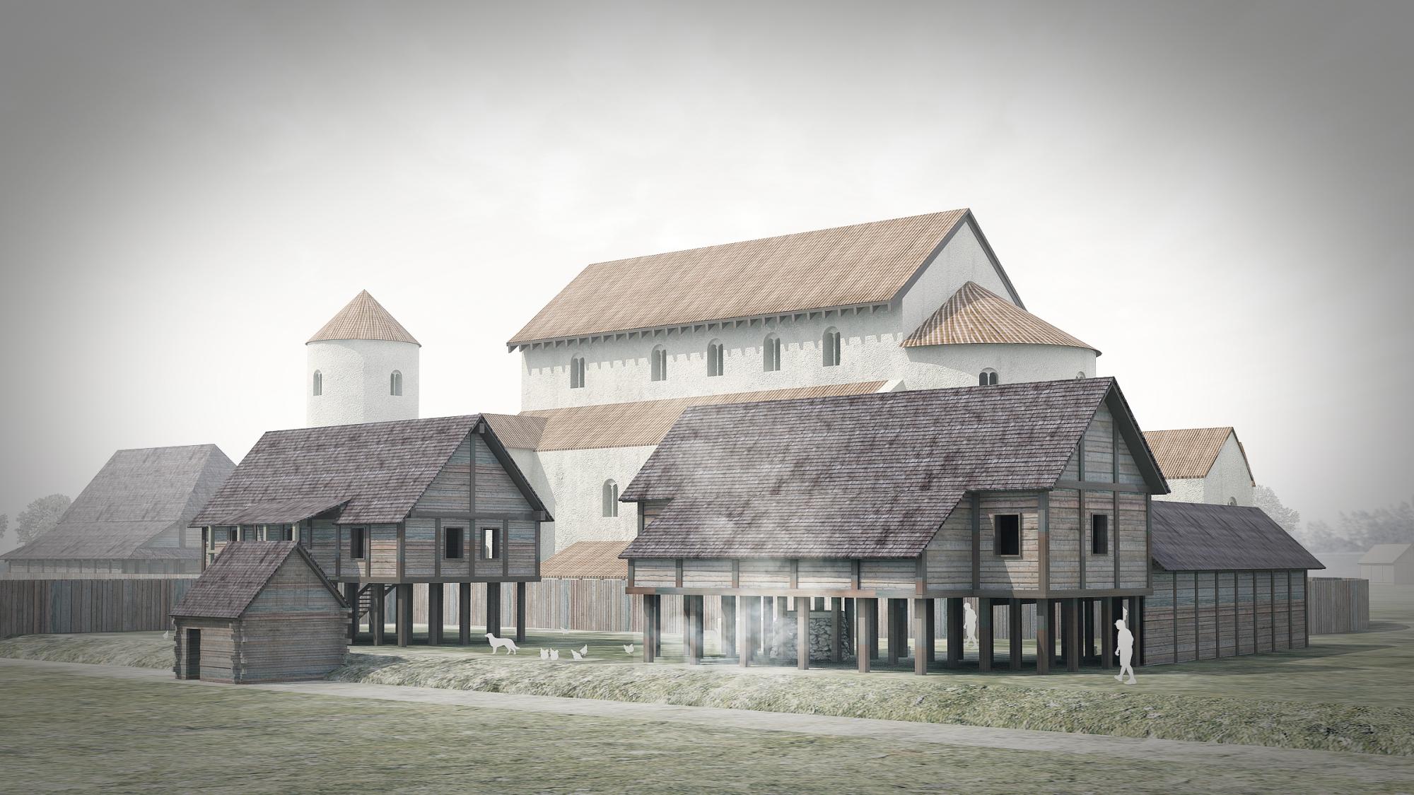 Hadrianus-zarándoktemplom és a fapaloták (elméleti rekonstrukció: Narmer Építész Stúdió)