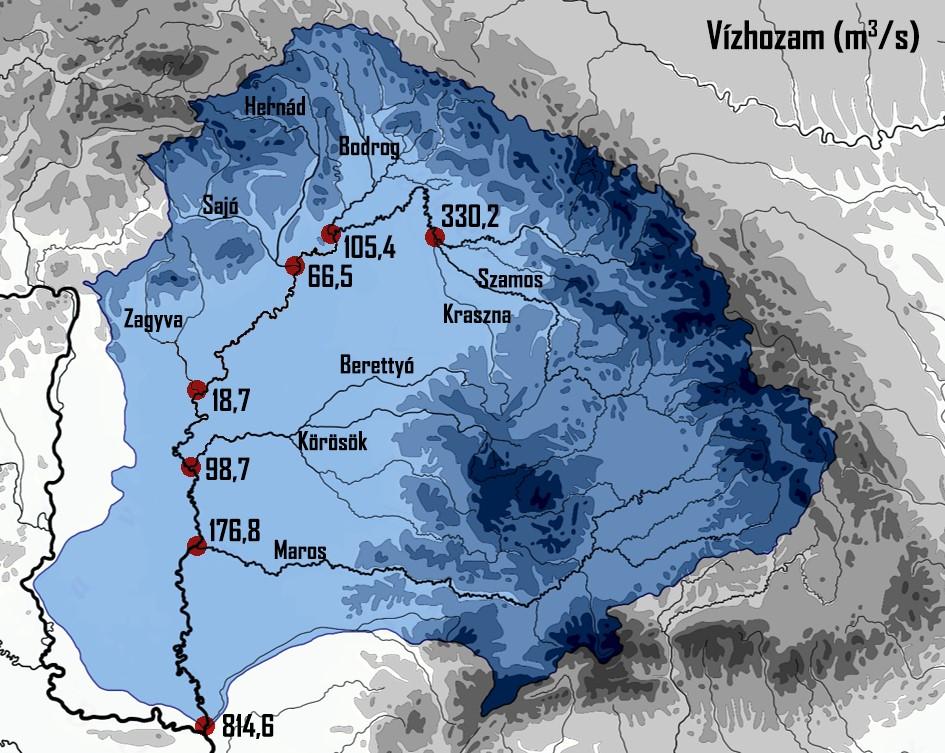 A Tisza vízgyűjtő területe és a mellékfolyók vízhozama (m3/s)