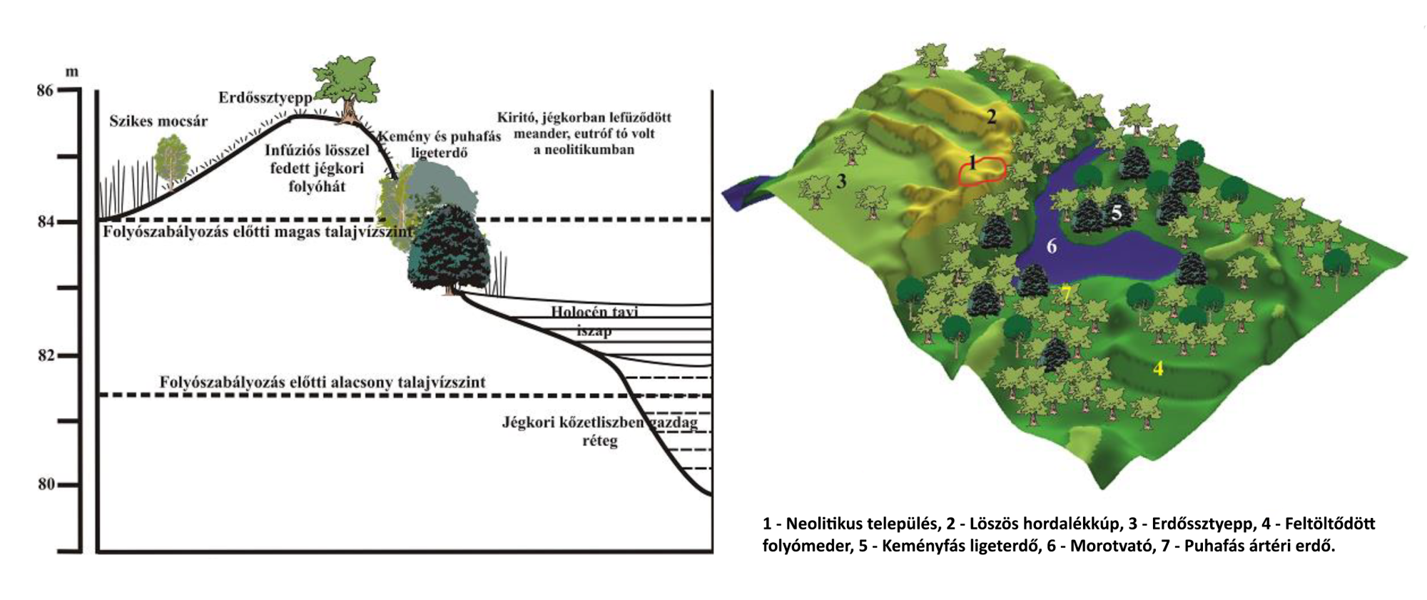 A mély és az alacsony ártér eltérő környezeti adottságokkal rendelkezett. Míg az előbbi területek az év jelentős részében víz alatt voltak, hiszen a lassú lefolyású árvizek minden egyes alkalommal elöntötték azokat, addig az alacsony ártér jó vízellátású, de csak a nagyobb árvizek által veszélyeztetett régiónak számított. E térszíneken, melyek állandó emberi megtelepedésre nem voltak alkalmasak, komplex ökoszisztémák jöttek létre.