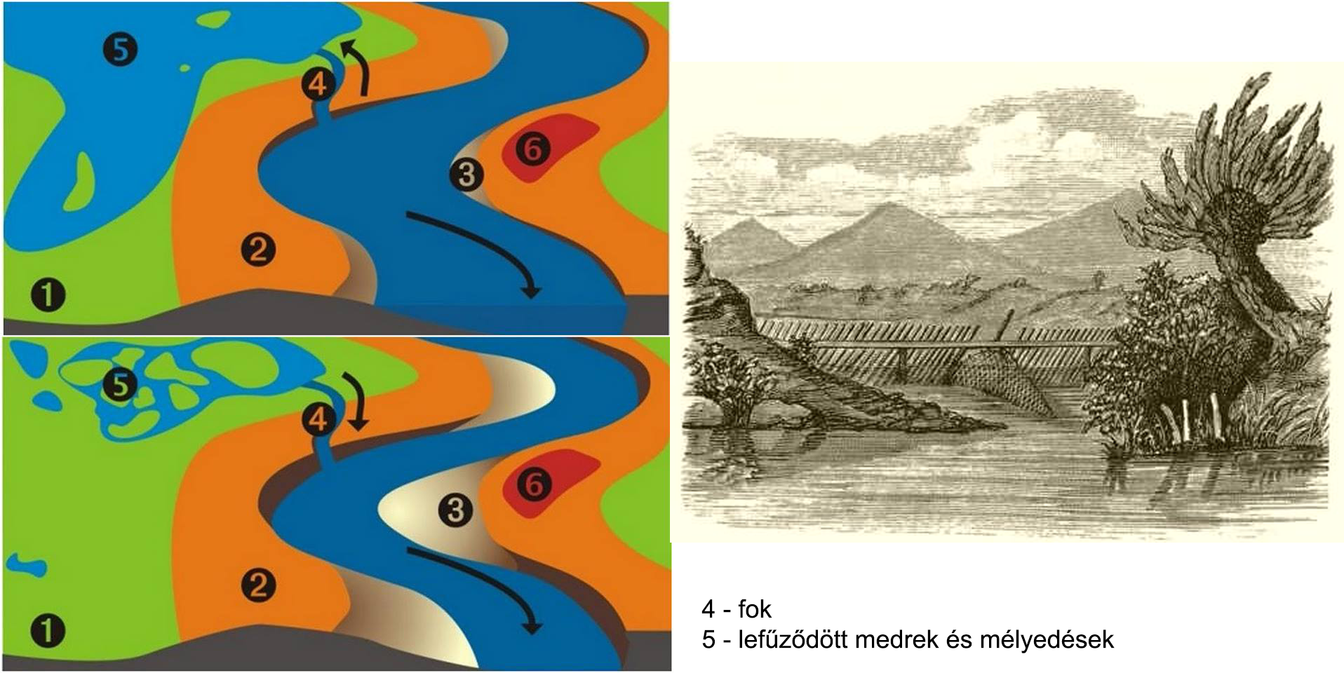 A tiszai ártér szerkezeti részei és jellegzetes növényviláguk (Sümegi Pál rekonstrukciója)