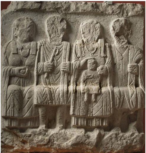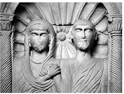 A házasság intézménye a római korban is fontos és életre szóló köteléket jelentett, amit nem csak az evilági életben tartottak fontosnak. A házastársi kötelék a halálon túl is összetartotta a házastársakat, ennek lenyomatai jól megfigyelhetők többek között a római sírkövek portréábrázolásain, valamint feliratain is. Az összetartozás elemei mind a szövegben, mind a képmezőben, a portrék egymáshoz való viszonyulásában megjelennek. A domborművek frontális beállítottsága lehetővé tette, hogy erős hangsúlyt kapjanak a kezek, illetve a kezekben tartott tárgyak.