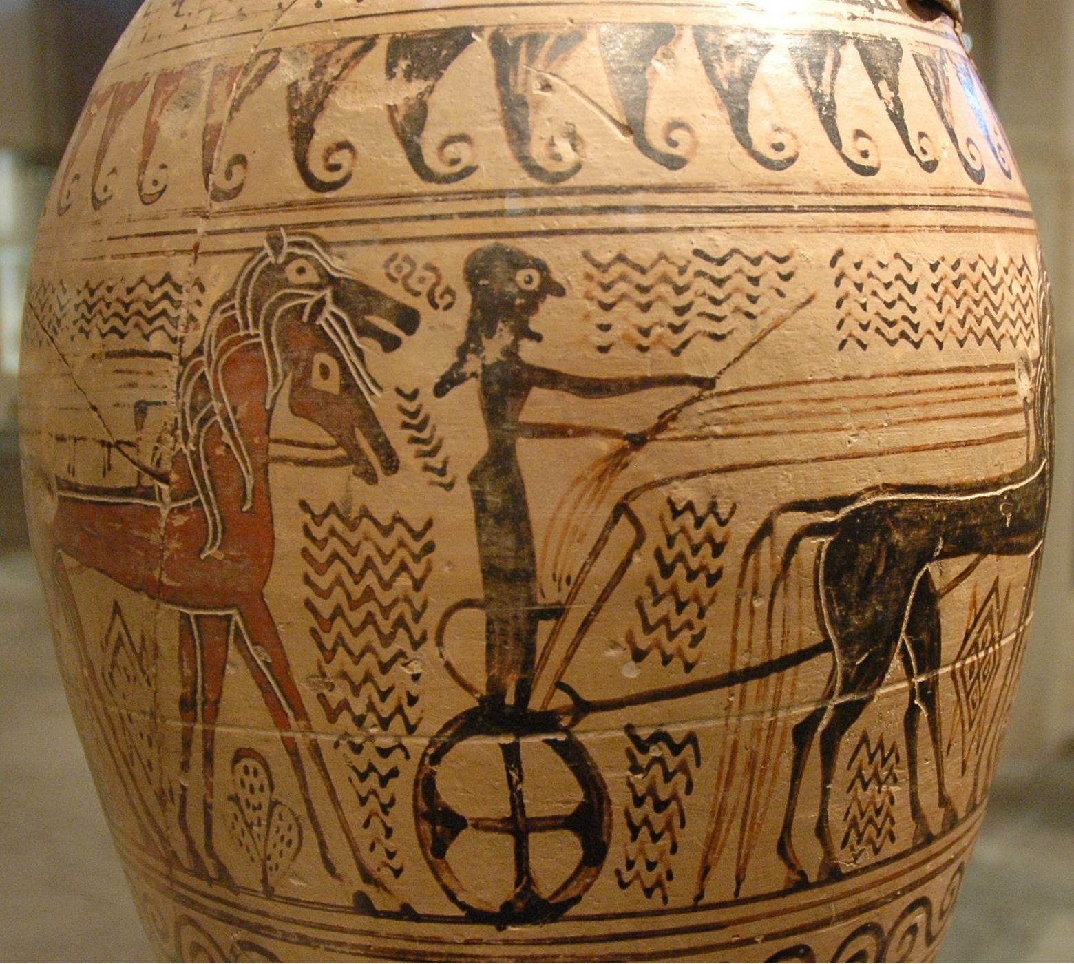 Ókori görög kocsihajtó. Geometrikus váza részlete, Louvre (forrás: Wikiwand)