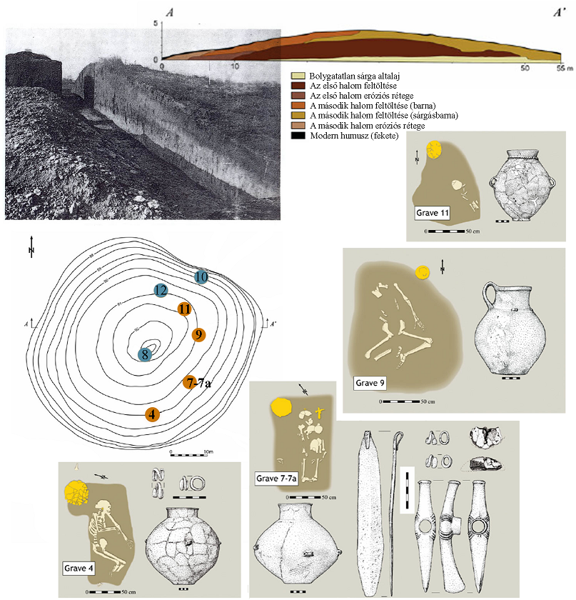 Megújított és többször használt halomsír. Sárrétudvari-Őrhalom, késő rézkori – kora bronzkori kurgán (forrás: Sárréti Krónika, Gerling et al. 2012)