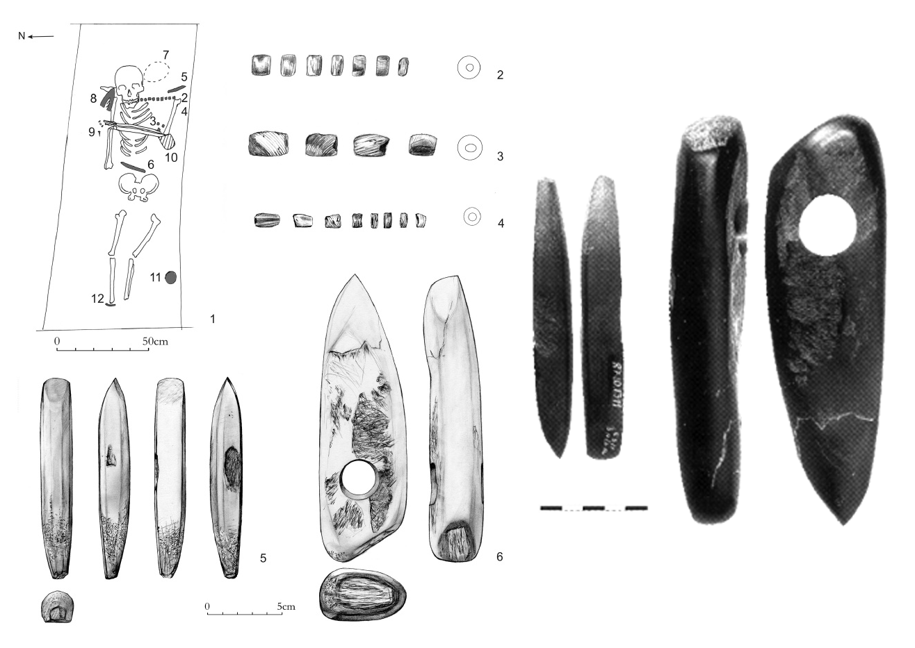 Késő újkőkori férfi temetkezés két csiszolt kőbaltával. Polgár-Csőszhalom (forrás: Bánffy – Bognár-Kutzián 2007)