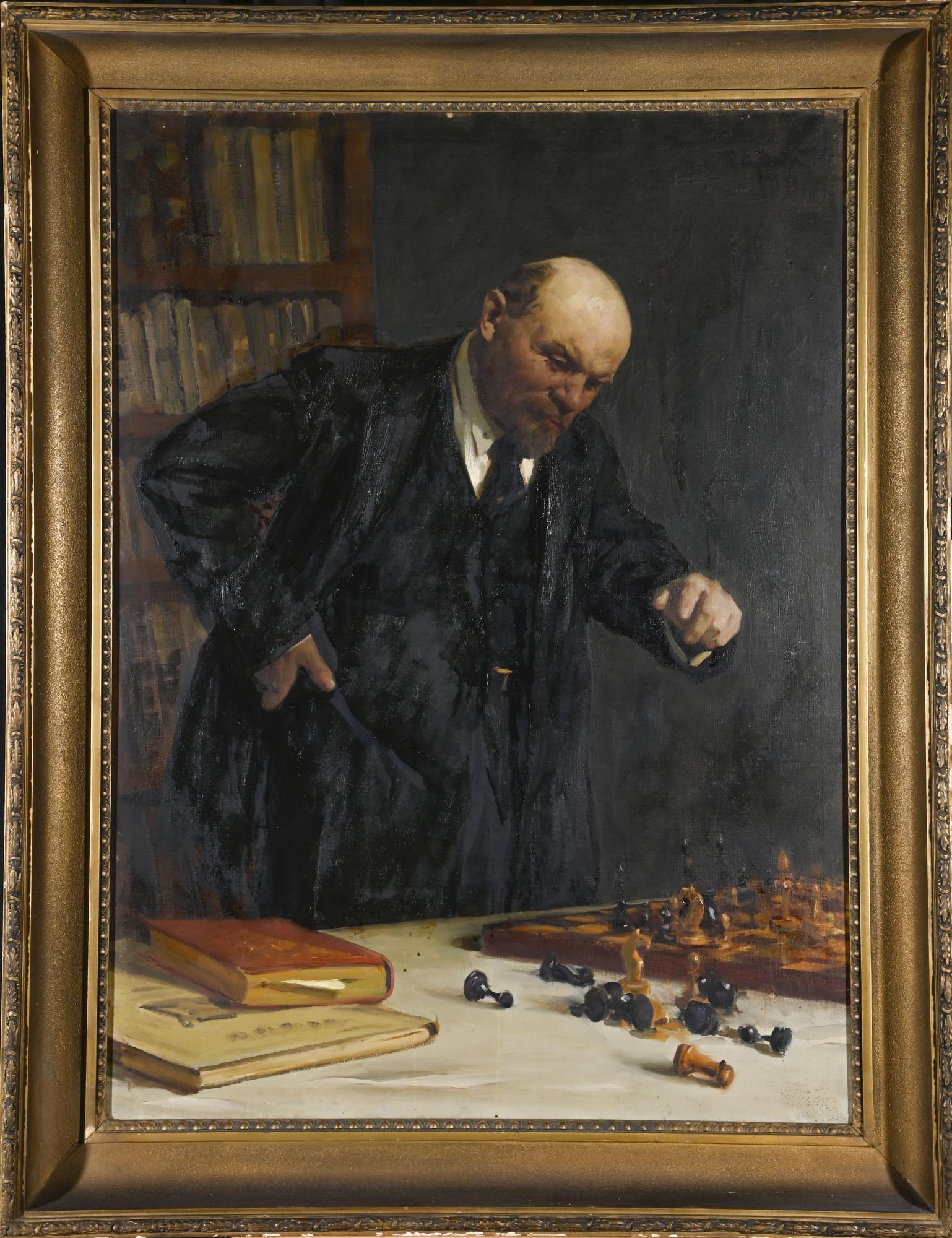 Szudakov festménye az Októberi Forradalom 40. évfordulója alkalmából Moszkvában megrendezett, 1957. november 5-én megnyílott „Össz-szövetségi jubileumi képzőművészeti kiállításon” került bemutatásra. A jubileum alkalmából nagyszabású ünnepséget rendeztek a Szovjetunió fővárosában, amelyre Kádár János is kiutazott. Moszkvai tartózkodása alatt, november 13-án Kádár ellátogatott a tárlatra is, ahol megtetszett neki Szudakov lendületes műve. Kádár nemcsak példaképeként tekinthetett a bolsevik forradalmár képmására, hanem önmaga egyfajta alteregójaként is, hiszen Leninhez hasonlóan maga is szenvedélyes sakkjátékos, s egyben pártfőtitkár is volt.