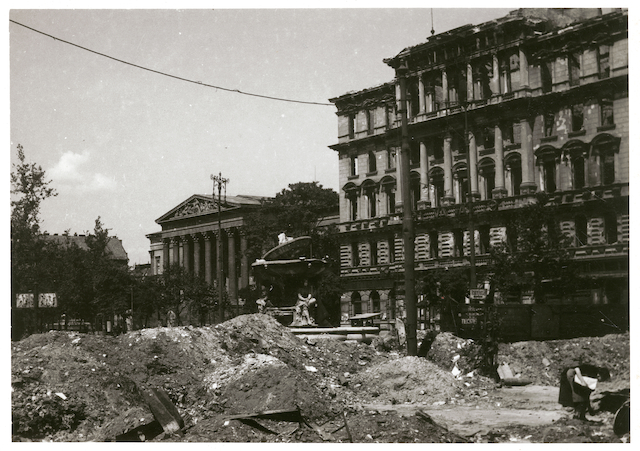 A romos Kálvin tér, háttérben a Magyar Nemzeti Múzeum, 1945, ismeretlen fényképező felvétele, MNM Történeti Fényképtár