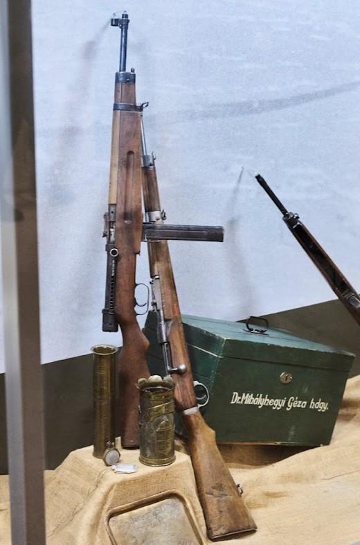Király-géppisztoly 1939M. (bal oldalon) a MNM állandó történeti kiállításában