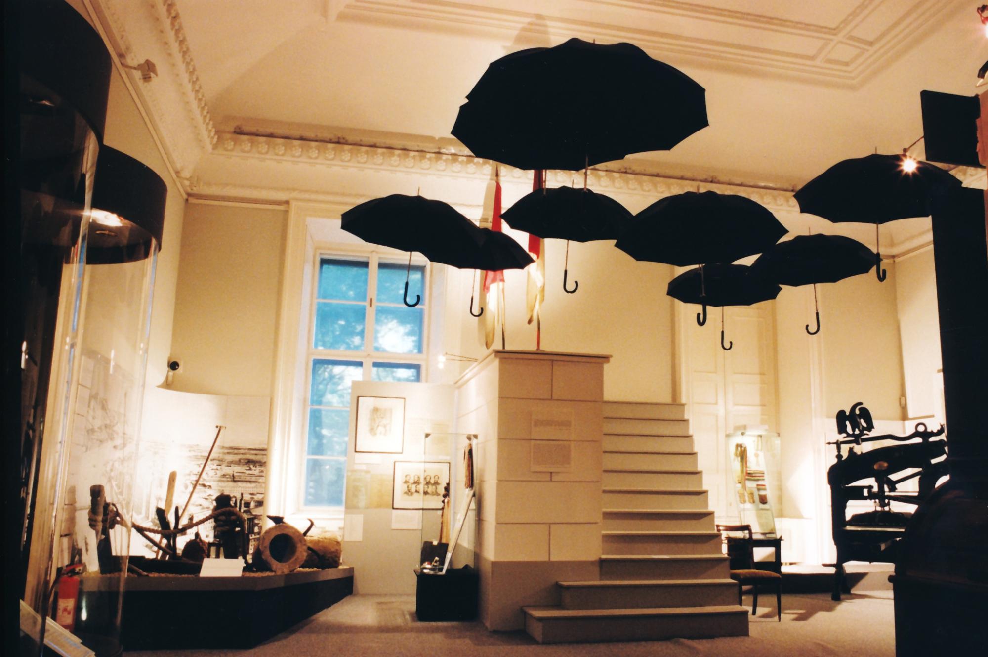 7. kép: A márciusi ifjak nemzedéke c. kiállításban a múzeumlépcsőnek és mellvédjének egy része is megjelent installációként (MNM Központi Adattár)