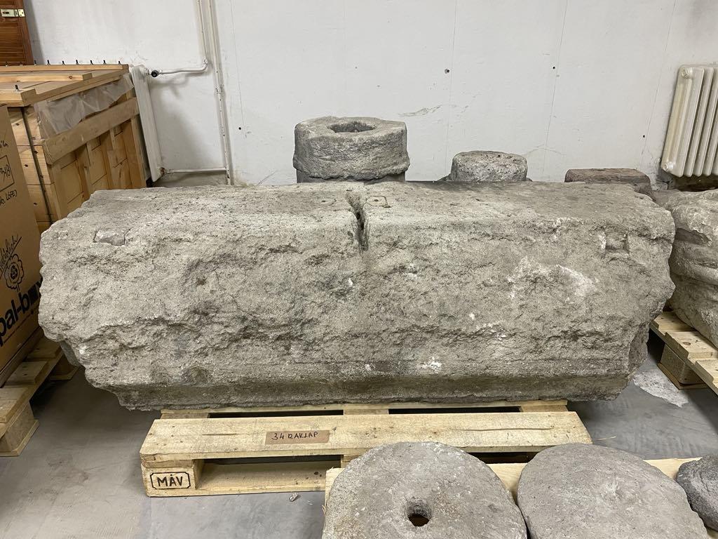 A Múzeumkertben most kiállított követ a múzeumépület 1975–77-es felújítása idején emelhették ki a helyéről (4-5. kép) és szállították raktárba. Erre utalnak a korábbi műszaki leírások és fényképdokumentációk, bár sajnos konkrét említése elmarad. Ezt követően azt tudjuk róla, hogy 1998 márciusában a Márciusi ifjak nemzedéke c. időszaki kiállításra felhozták a raktárból és a múzeum előcsarnokában, pontosabban az ún. Apponyi-folyosóhoz vezető lépcső előtt helyezték el (6-7. kép). Ezúttal pedig a Nemzeti Múzeum Daróczi úti római kőraktárából hozták át a Múzeumkertbe, de kiállítása előtt még Antal Marianna kőrestaurátor (MNM) megtisztította (8. kép).