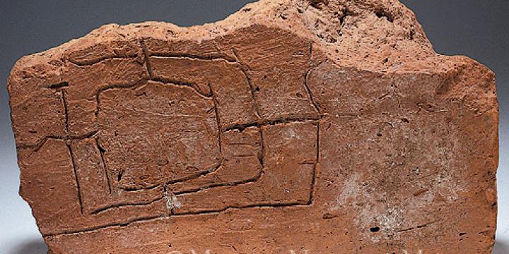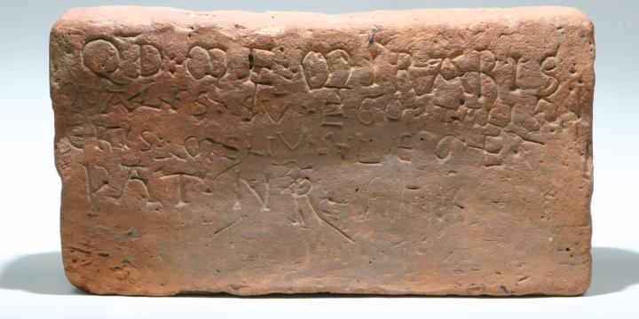 Szerzetes sírját jelölő tégla az állandó történeti kiállítás 1. terméből