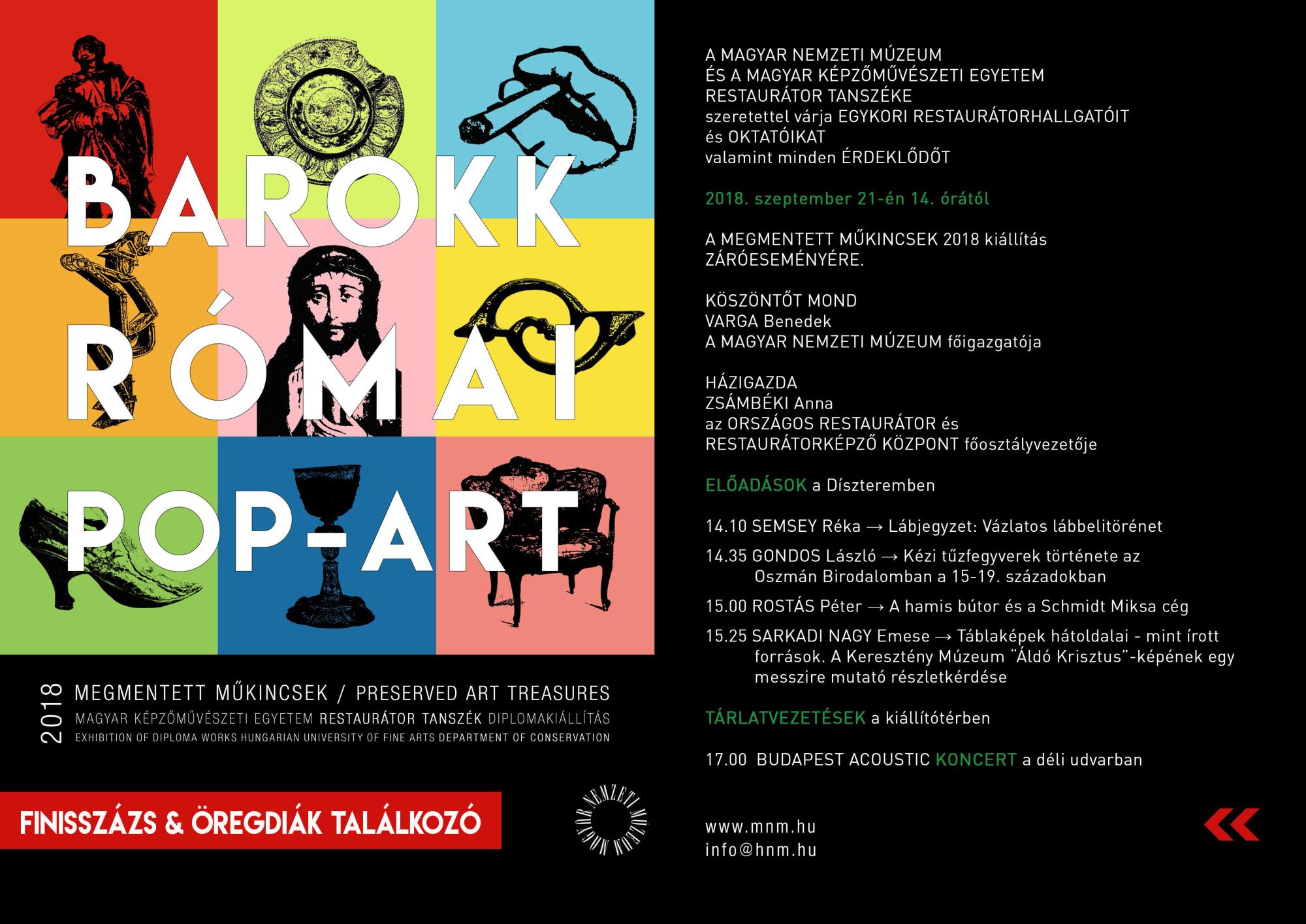 A  Magyar Nemzeti Múzeum és a Magyar Képzőművészeti Egyetem Restaurátor Tanszéke szeretettel várja egykori restaurátorhallgatóit és az oktatókat, valamint minden érdeklődőt!
