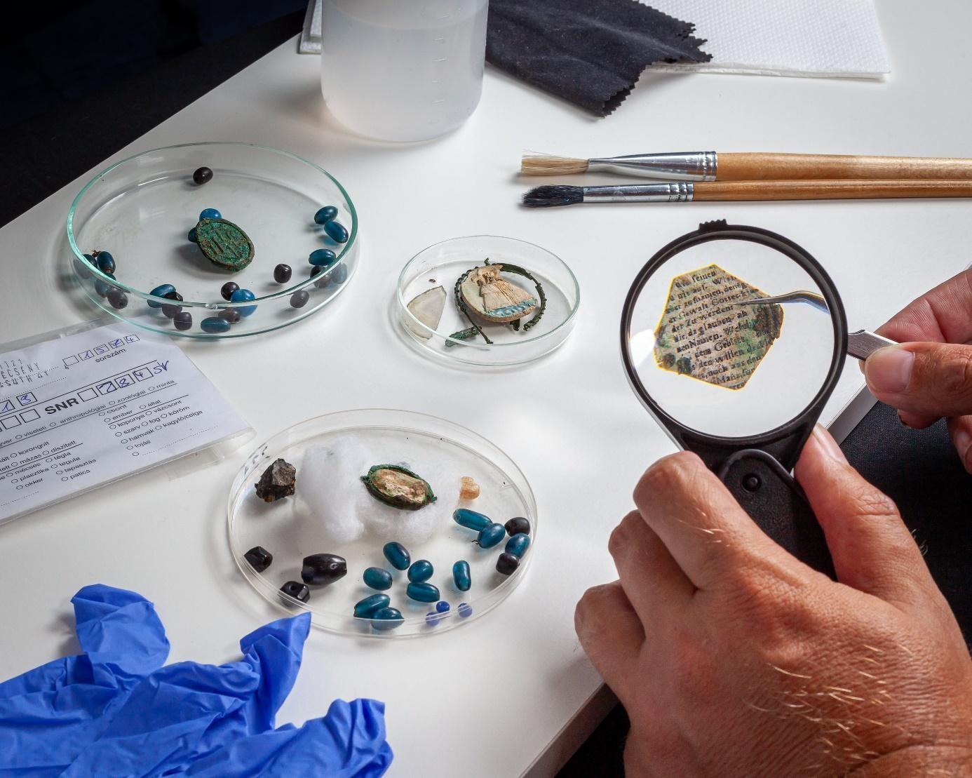 Az ásatásokon előkerülő komplex anyagú leletek (fém-textil-bőr-üveg, ásvány), mint például a viseleti leletek, fémfonalas textilek mindig sok kérdést vetnek fel, az „in situ” felszedéstől kezdve a restaurátorműhelyben felmerülő kérdéseken keresztül a kiállításig. Fontos, hogy a leletek felszedése után ne teljenek el évek a restaurálásig, vagy ha elkerülhetetlen, akkor milyen körülményeket kell biztosítani, hogy megmenthető és kutatható legyen a műtárgy.