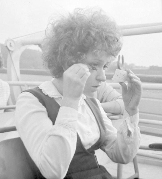 Fiatal nő festi a szemét a Disc-Jockey zenés sétahajón, 1970.